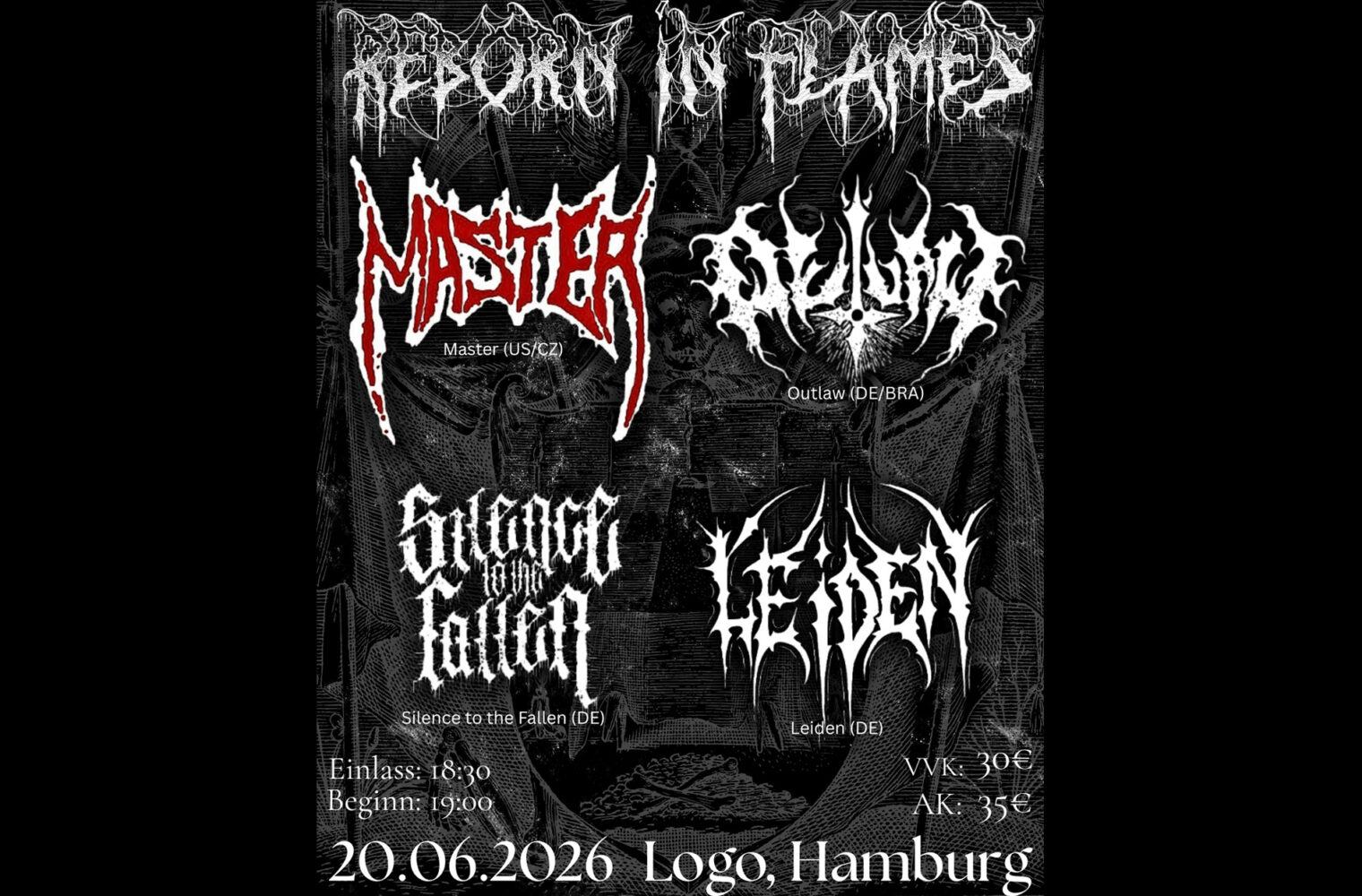 | 20.06.2026 | MASTER, OUTLAW, LEIDEN, SILENCE INTO THE FALLEN | Logo | |
